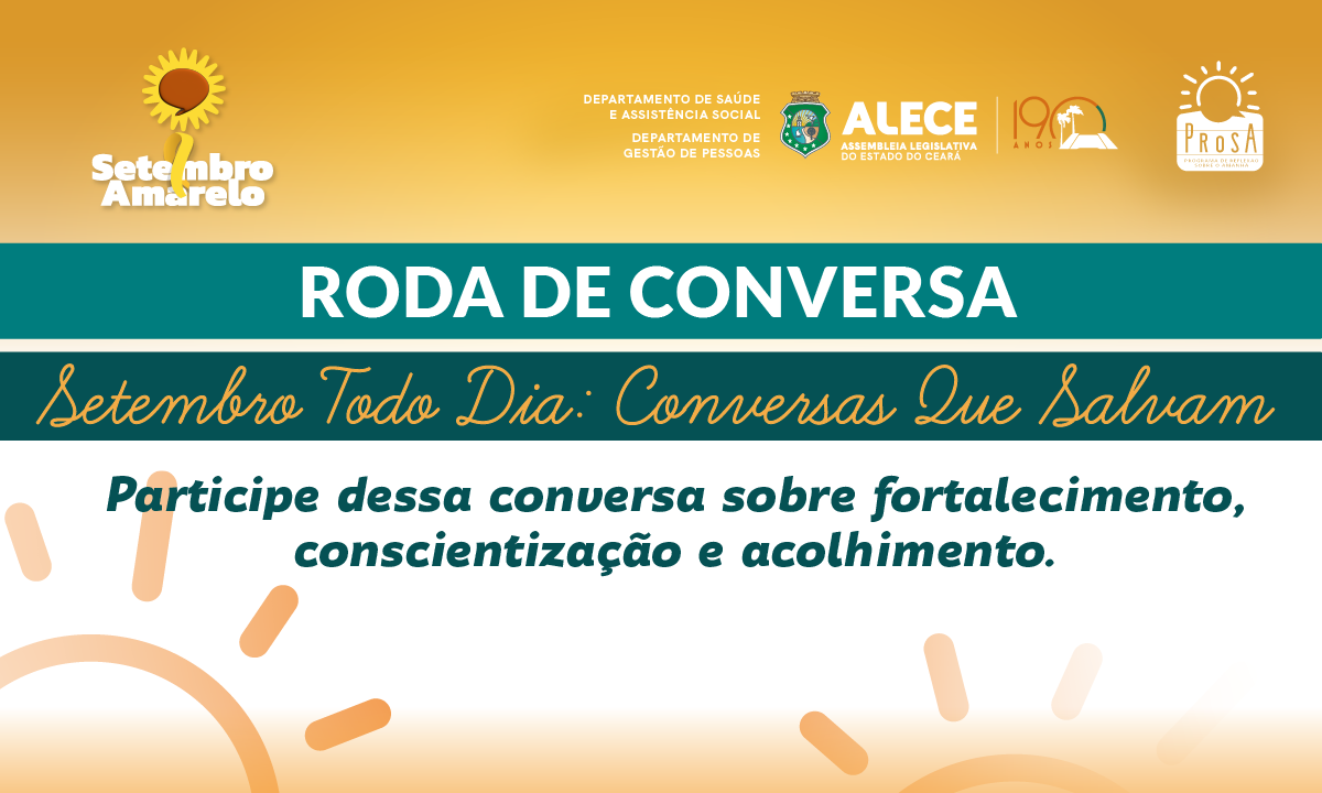 As ações do Setembro Amarelo não param na Assembleia Legislativa do Estado do Ceará (Alece). O Departamento de Gestão de Pessoas (DGP), por meio do Programa de Reflexão sobre o Amanhã (Prosa), realiza...