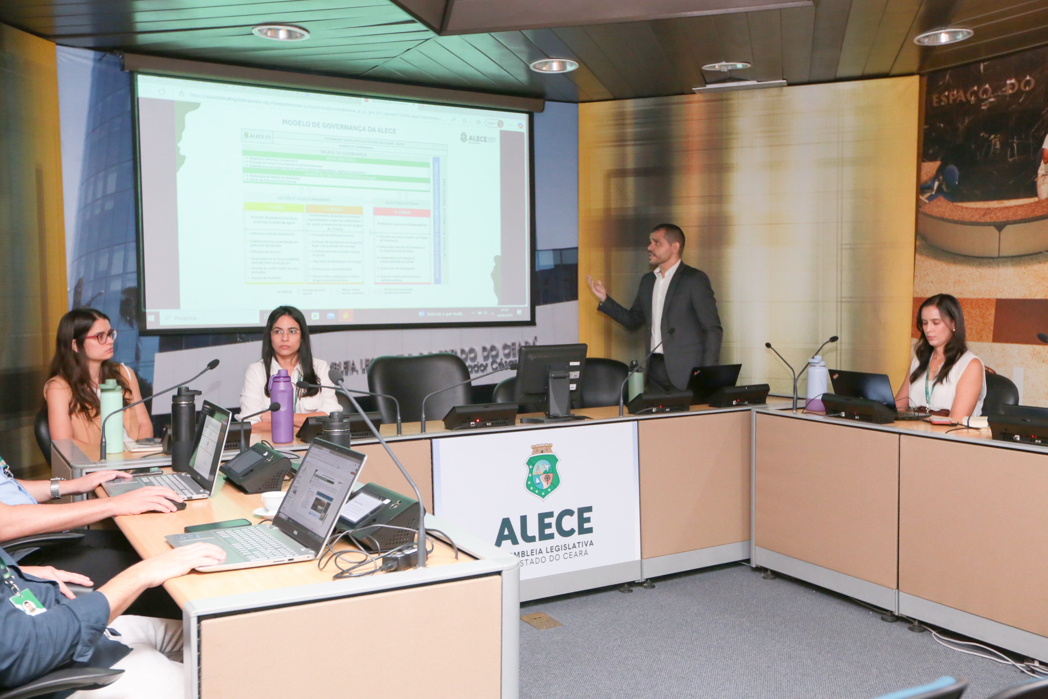 Na manhã de segunda-feira (30/06), os servidores da Controladoria da Alece receberam o grupo e fizeram uma exposição geral sobre o modelo de governança da Casa, além da estrutura e da atuação do órgão de Controle Interno do Legislativo cearense.