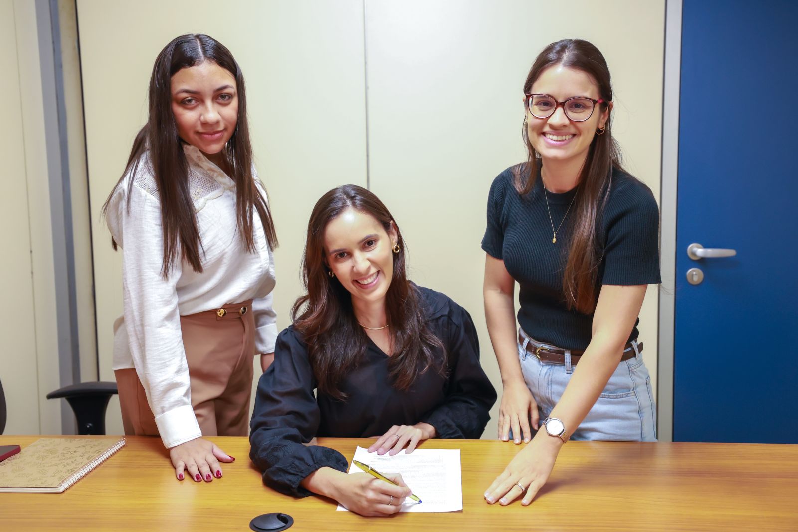 Da esquerda para a direita: Vanderlane Silva, orientadora da Célula de Transparência e Integridade; Ticiane Araújo, controladora da Alece; Lara Diógenes, orientadora da Célula de Informações Estratégicas de Controle. Foto: Júnior Pio
