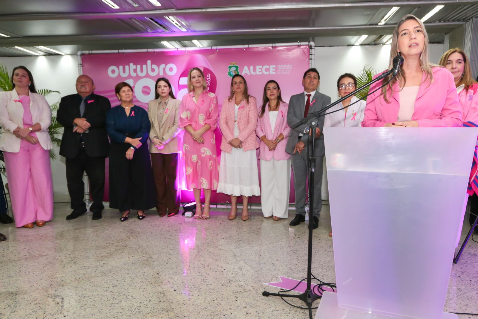 A Assembleia Legislativa do Estado do Ceará (Alece) lançou, nesta quarta-feira (08/10), a campanha “Outubro Rosa: um ato de amor por sua vida”. O evento, que reuniu parlamentares, servidores e convidados, foi realizado no Espaço Deputada Zélia Mota, no prédio principal do Legislativo cearense.