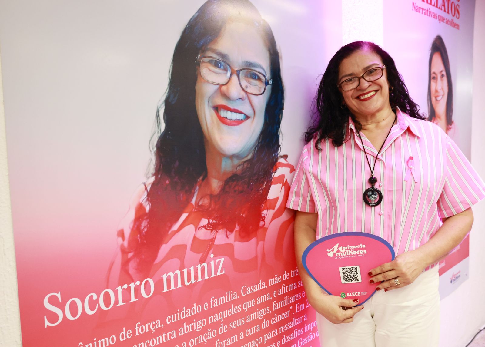 A programação do Outubro Rosa na Alece conta com diversas atividades, como a campanha “Doe Lenços” e a exposição "Retratos e Relatos - Narrativas que Acolhem", lançada durante o evento e idealizada pelo Movimento das Mulheres do Legislativo Cearense (MMLC).