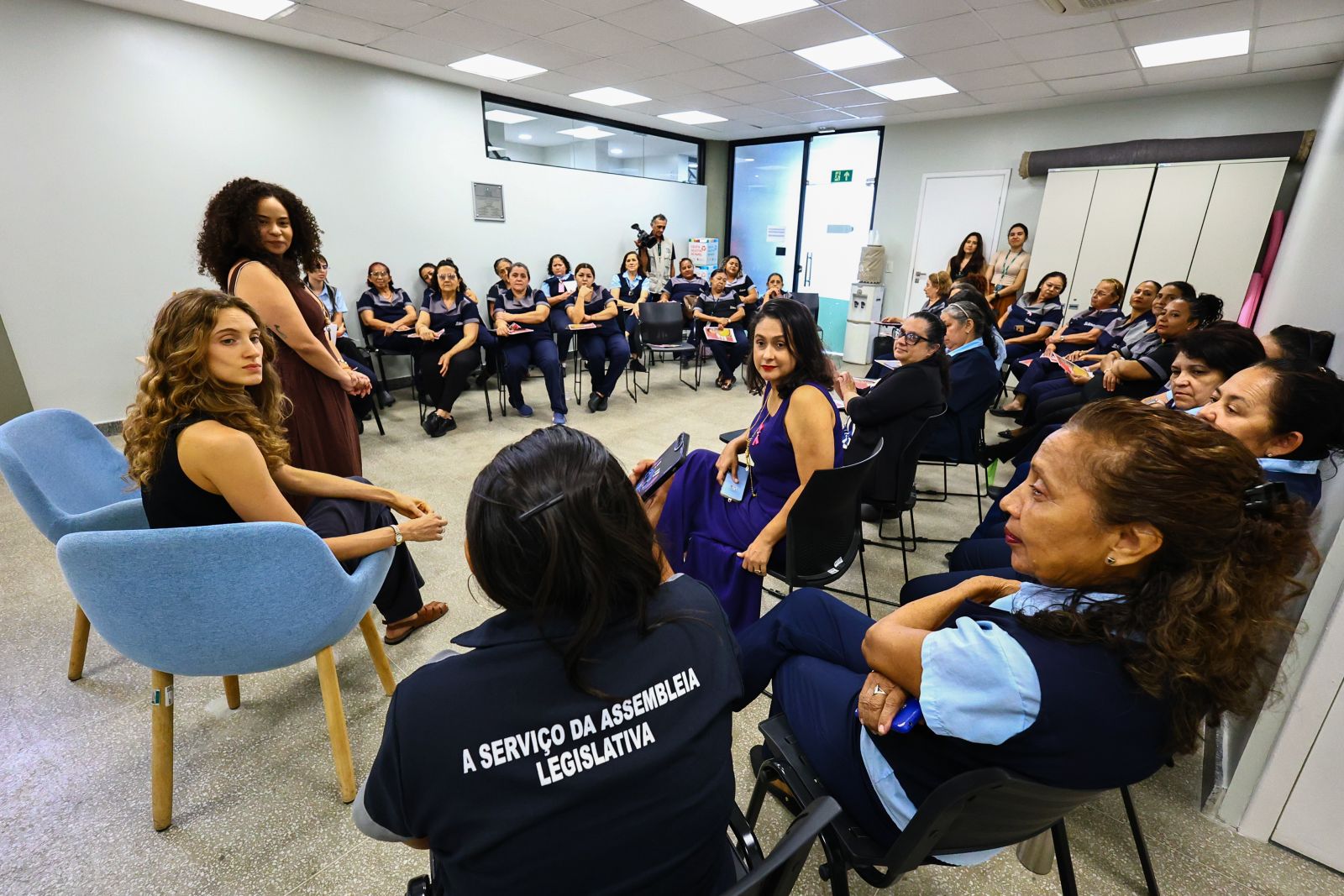 Além da instalação das caixetas, outra ação da campanha foi a formação realizada com colaboradoras dos serviços gerais que atuam nos prédios da Casa, nesta quinta-feira (30/10).