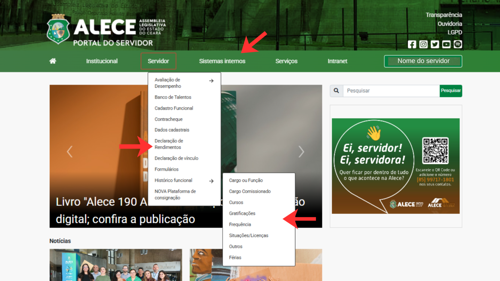 Confira todas as funcionalidades do Portal do Servidor da Alece
