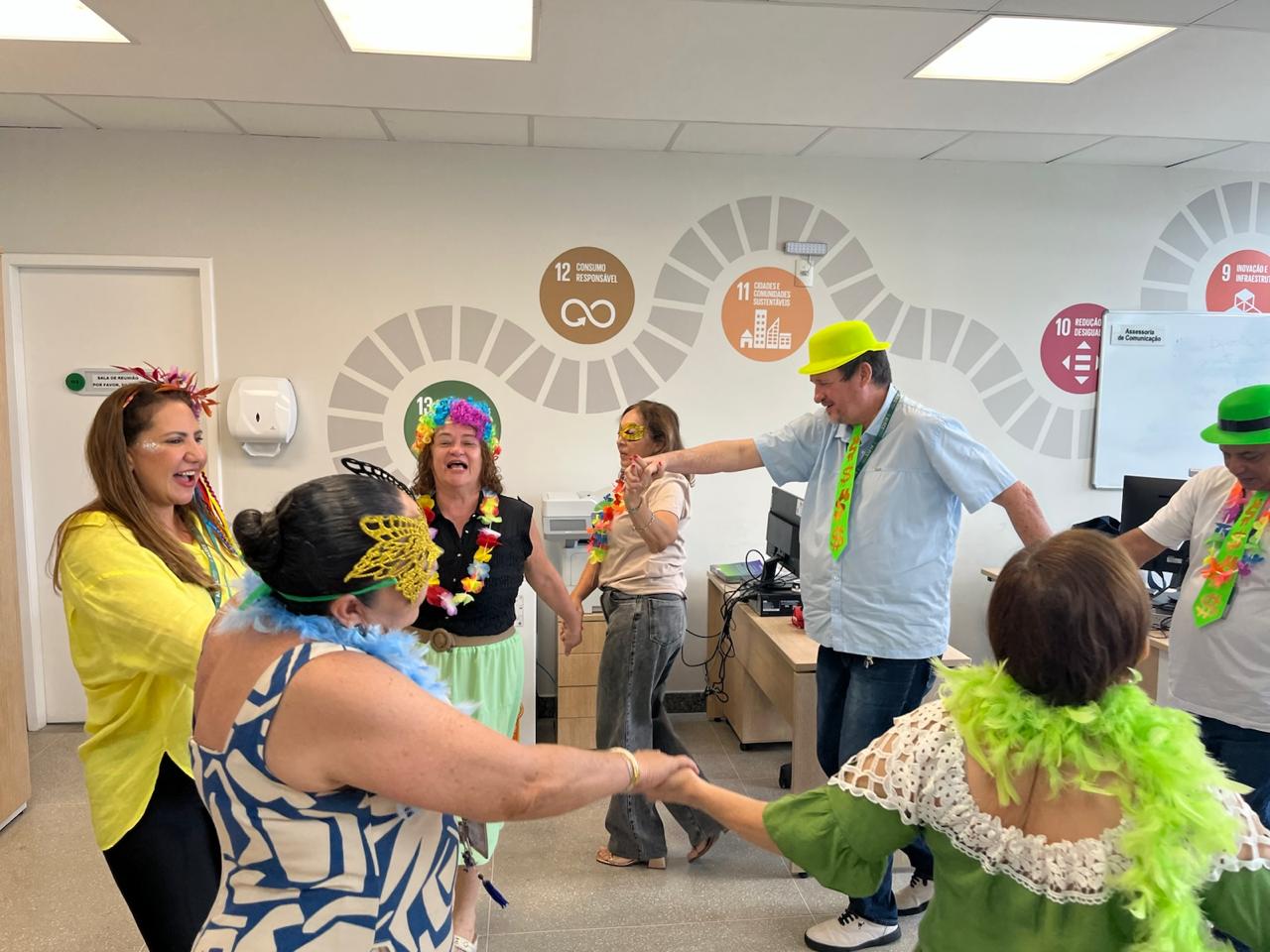 “A ginástica laboral está vindo como um acolhimento neste retorno do trabalho com essa temática de carnaval. Nossas instrutoras vão aos setores e fazem o alongamento ao som de músicas carnavalescas, promovendo alegria, descontração, socialização e bem-estar. Pedimos que os setores tragam adereços para entrar no clima”, comentou.
