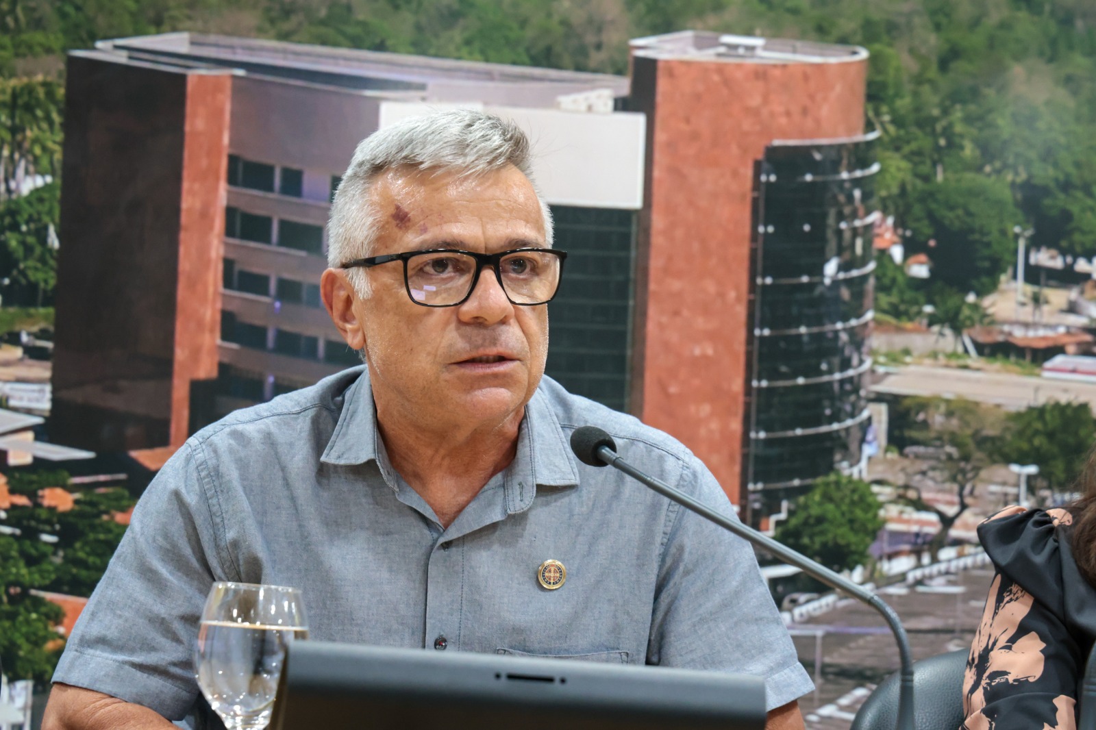 O presidente da Alece, deputado Romeu Aldigueri (PSB), apresentou em Plenário aos parlamentares a proposta de reforma e requalificação do edifício-sede da Casa — Foto: Dário Gabriel