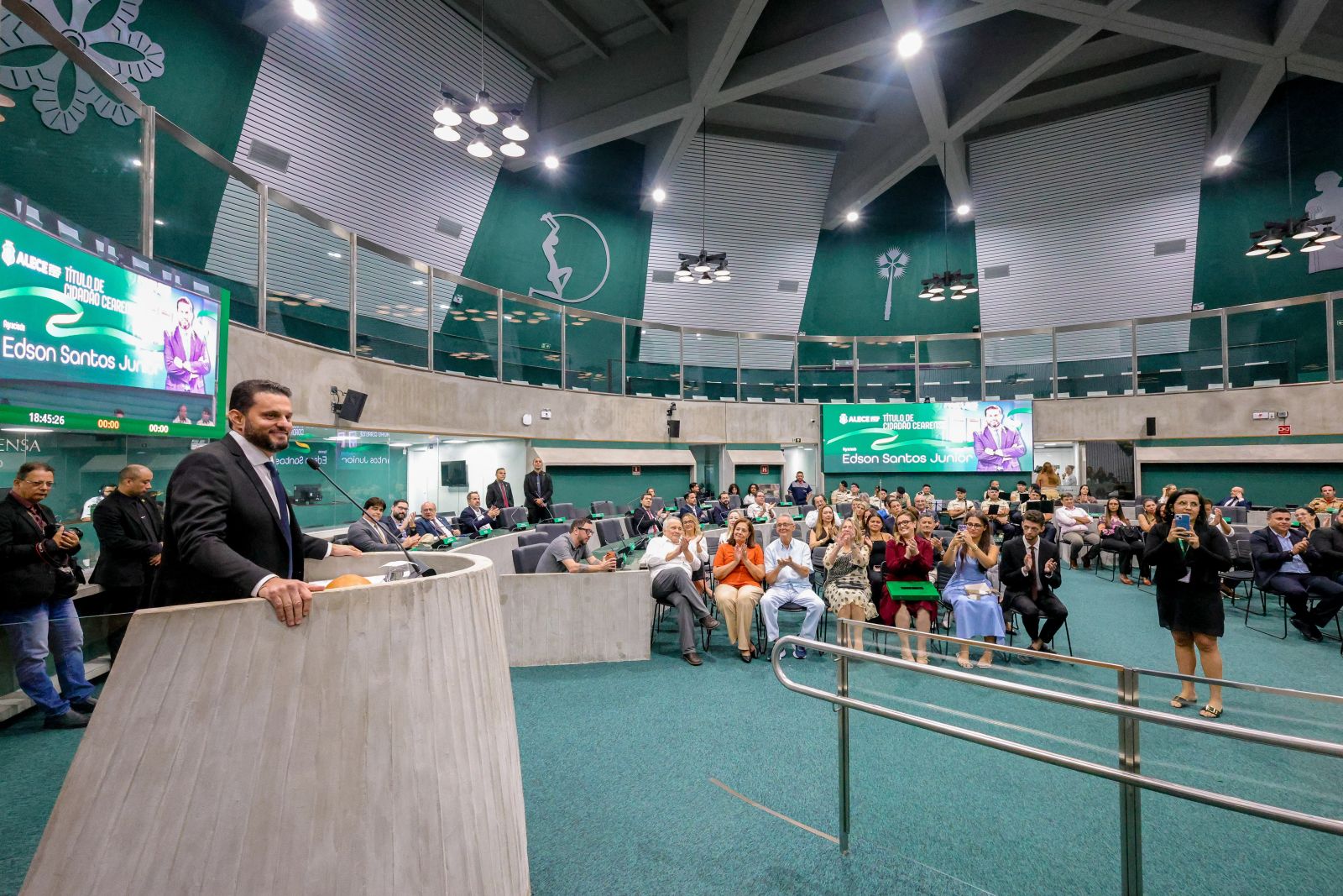 “O povo cearense me acolheu como um grande filho, o Ceará me acolhe hoje como um filho e eu fico muito feliz com isso, muito feliz mesmo”, confessou Edson Junior, que agradeceu a honraria, especialmente ao presidente da Alece, deputado Romeu Aldigueri (PSB).
